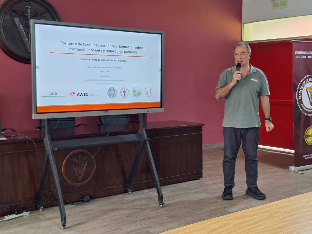 El lunes 23 de marzo se realizó el acto de apertura del curso teórico-práctico “Fomento de la educación sobre el bienestar animal: formación docente y renovación curricular”, en la Facultad de Ciencias Veterinarias de la UNA.