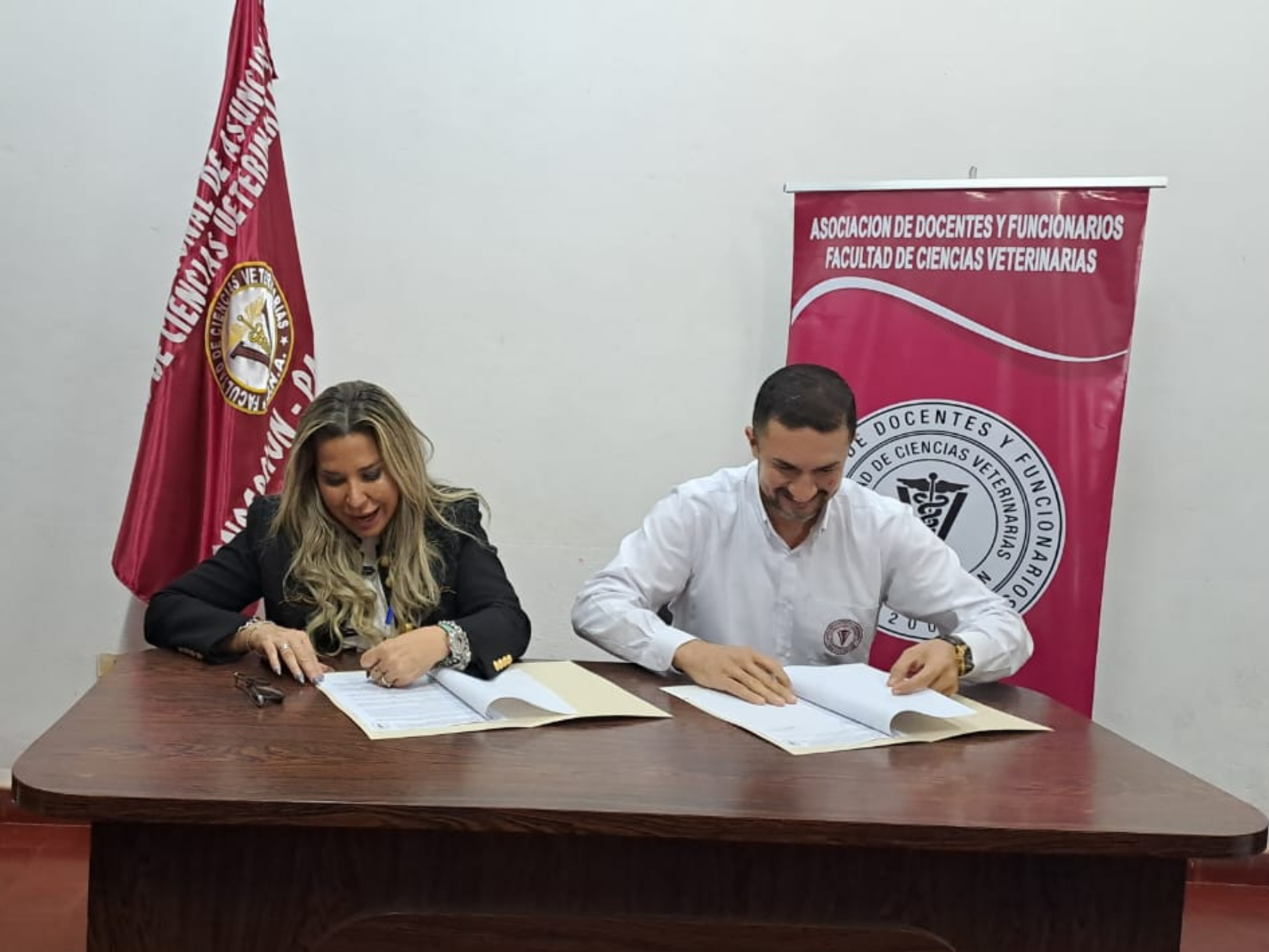 En la ocasión también se suscribió un convenio marco de cooperación entre la FCV UNA, representada por la Prof. Dra. Viviana María Ríos Morínigo, decana de la institución, y la ASODOFU-FCV-FC, representada por el Abg. Diego David Melgarejo Fernández, presidente de la asociación. El objetivo del acuerdo es aunar esfuerzos para apoyar el desarrollo de actividades conjuntas entre ambas partes, en beneficio del fortalecimiento institucional y académico.