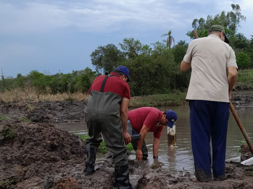 El jefe del Departamento de Piscicultura, Dr. Eduardo López, junto al técnico Dr. Héctor Bogado, brindaron asesoramiento especializado y apoyo técnico para la construcción de nuevos estanques piscícolas, así como la adecuación de otros reservorios de agua con fines productivos.