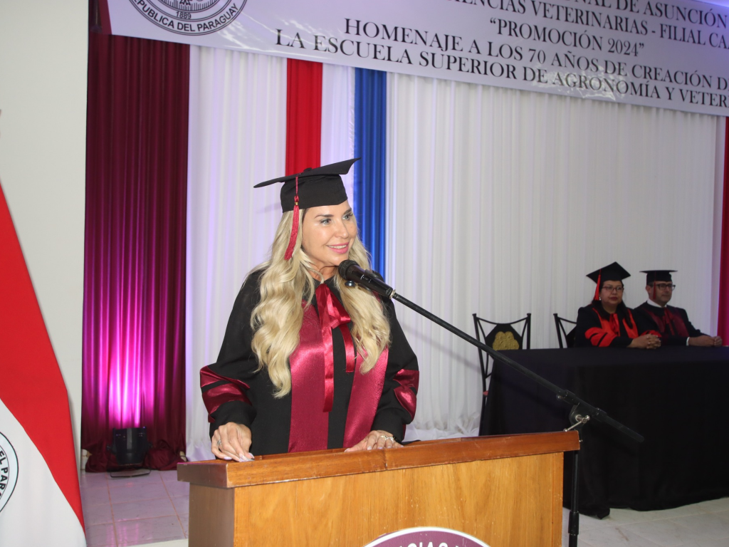El jueves 2 de octubre de 2025 se realizó la ceremonia de graduación en la Filial Caazapá de la Facultad de Ciencias Veterinarias de la UNA, donde estudiantes de la carrera de Ciencias Veterinarias recibieron sus títulos como parte de la promoción 2024, denominada “Homenaje a los 70 años de creación de la Escuela Superior de Agronomía y Veterinaria”.
