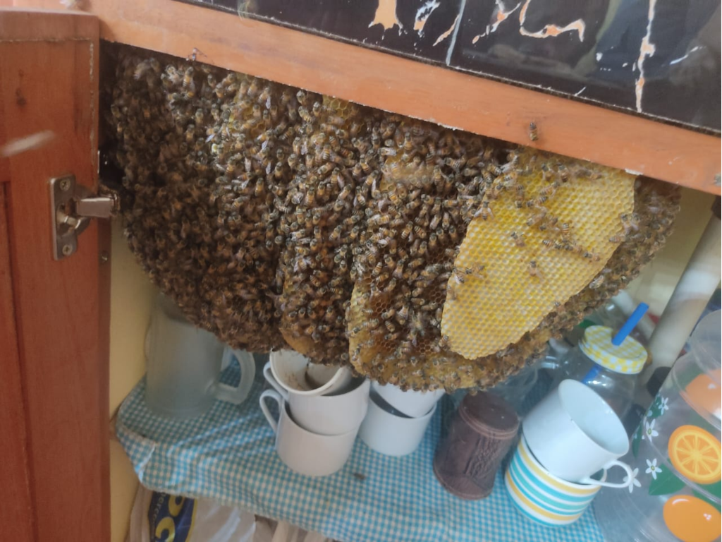 Estudiantes del sexto curso de la Facultad de Ciencias Veterinarias de la UNA, Filial San Estanislao, llevaron a cabo un rescate de abejas en el centro de la ciudad, como parte de las actividades de la Cátedra de Apicultura.