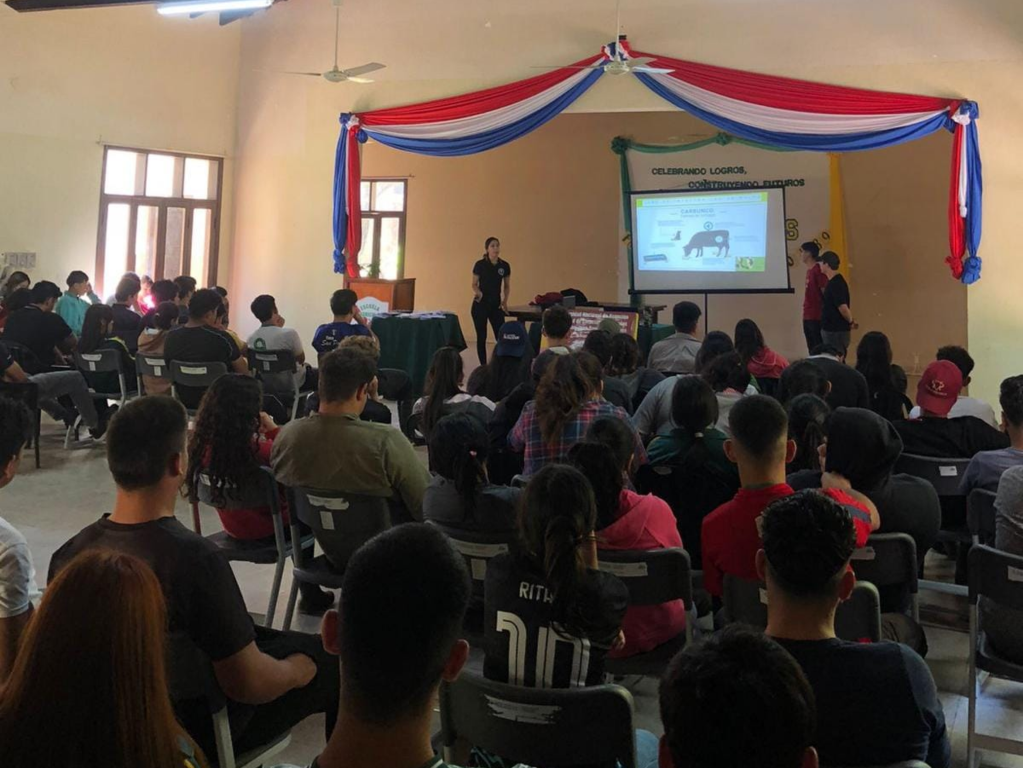 Estudiantes del tercer curso de la Facultad de Ciencias Veterinarias de la UNA, Filial San Juan Bautista Misiones, realizaron una Jornada de Divulgación sobre Enfermedades Zoonóticas y su Prevención en la Escuela Agrícola San Juan. La iniciativa se desarrolló en el marco de las actividades de extensión universitaria, como parte de un proyecto impulsado por el Departamento de Microbiología e Inmunología y la Cátedra de Enfermedades Infecciosas y Contagiosas.