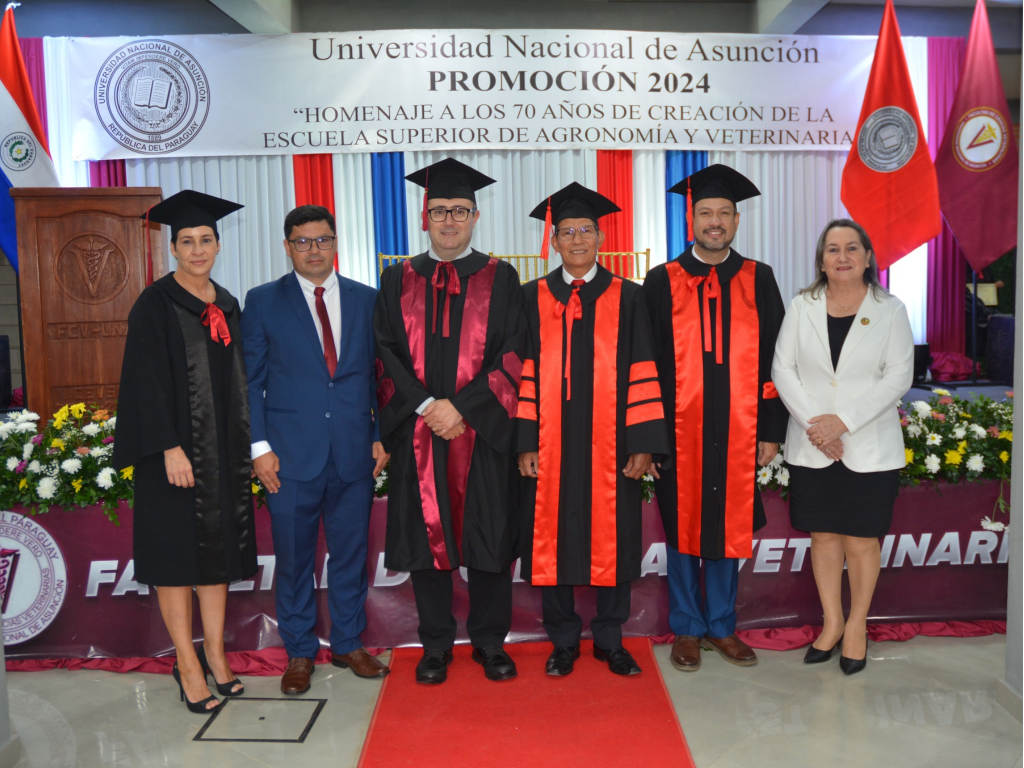 El viernes 7 de noviembre de 2025 se realizó la ceremonia de graduación en la Filial San Estanislao de la Facultad de Ciencias Veterinarias de la UNA, donde los estudiantes de la carrera de Ciencias Veterinarias recibieron sus títulos como parte de la Promoción 2024, denominada “Homenaje a los 70 años de creación de la Escuela Superior de Agronomía y Veterinaria”.