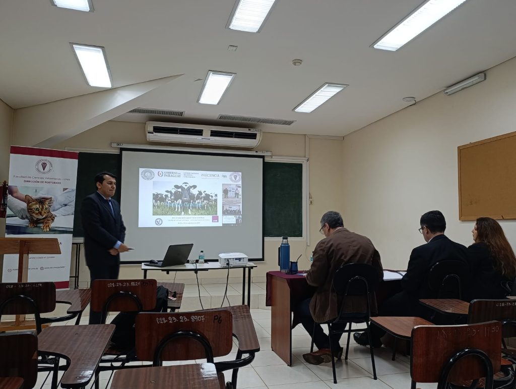 El 10 de diciembre de 2025, el Dr. Victor Acosta Acosta, estudiante del programa de postgrado Maestría en Medicina Veterinaria de la Facultad de Ciencias Veterinarias de la UNA, filial Caazapá defendió su tesis titulada “Concentración plasmática de metabolitos (urea y glucosa) y composición química de la leche (grasa y proteína) en vacas lecheras mestizas (Hostein y Jersey), suplementadas con dos tipos de formulaciones, en el distrito de San José de los Arroyos, Departamento de Cordillera, Año 2024”