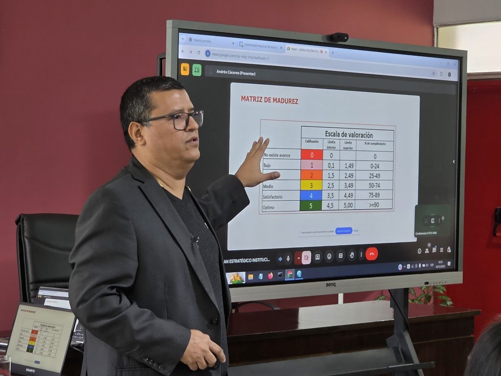 Durante la exposición, el Dr. Madelaire presentó los principales lineamientos y criterios que deberán guiar la elaboración del PEI 2026–2030, en el marco de la planificación estratégica que rige para todas las instituciones públicas. Explicó el alcance del proceso a nivel de la UNA y la necesidad de que cada unidad académica adapte su trabajo a la metodología establecida.