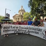 Este jueves 5 de febrero, docentes de la Facultad de Ciencias Veterinarias de la UNA, participaron de la movilización realizada frente al Congreso Nacional, en el marco del estudio del Proyecto de Ley de Reforma de la Caja Fiscal en la Cámara de Diputados.