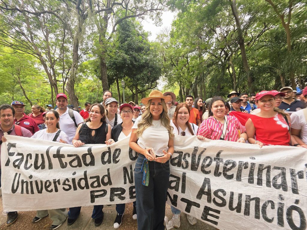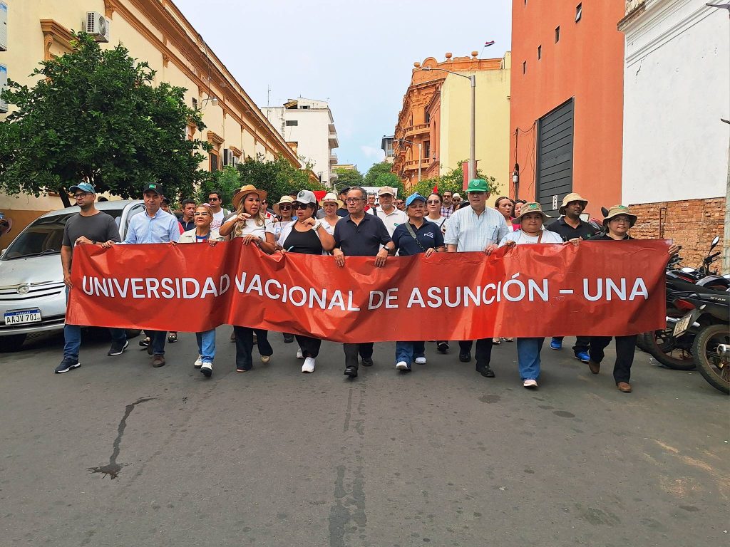Docentes de la Facultad de Ciencias Veterinarias de la UNA participaron en la mañana del martes 10 de febrero de 2026 de la movilización realizada frente al Congreso Nacional, en el marco del paro total declarado por el Consejo Superior Universitario (CSU).