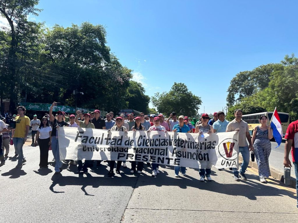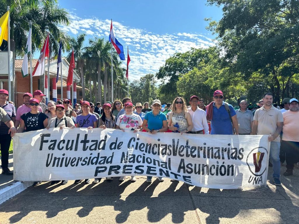 Docentes de la Facultad de Ciencias Veterinarias de la UNA se sumaron este miércoles 11 de febrero de 2026 a la movilización realizada sobre la Ruta Mariscal Estigarribia, en el marco del paro total declarado por el Consejo Superior Universitario (CSU).