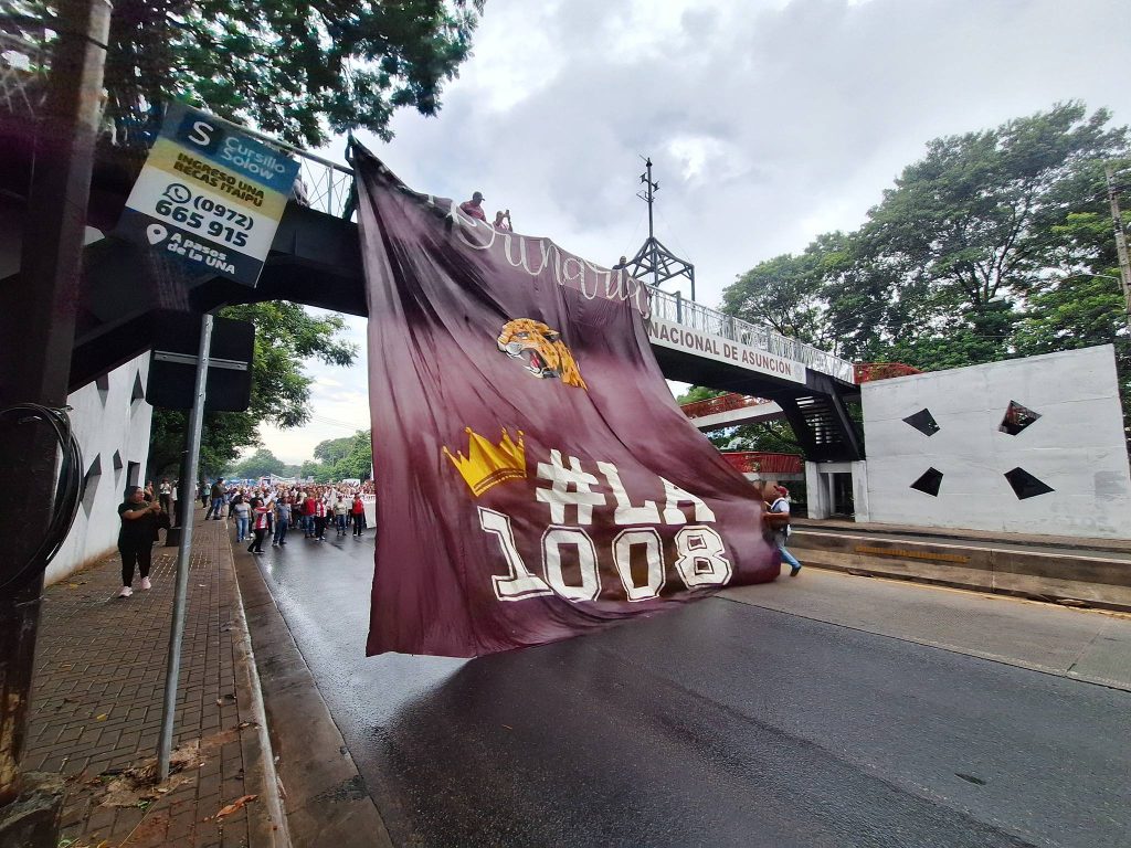 La jornada comenzó a tempranas horas frente a la Biblioteca de la facultad, donde los docentes se congregaron vestidos con remeras blancas, camisetas de la Albirroja y guardapolvos, formando una extensa “ola blanca” que partió desde la institución hacia el Rectorado de la UNA. Desde allí, junto a representantes de distintas unidades académicas, marcharon sobre Ruta Mcal. Estigarribia y la Avenida Mariscal López, sumándose al reclamo colectivo del sector universitario.